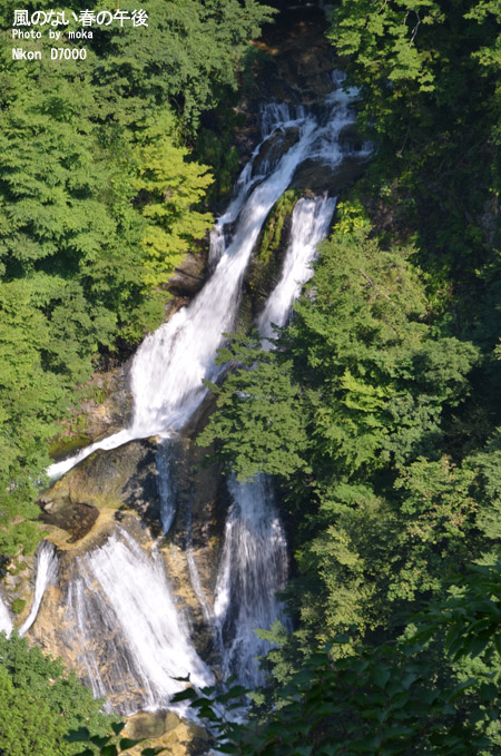 上下二段に分れていて、上滝は25m、下滝は26mで、全長は75m